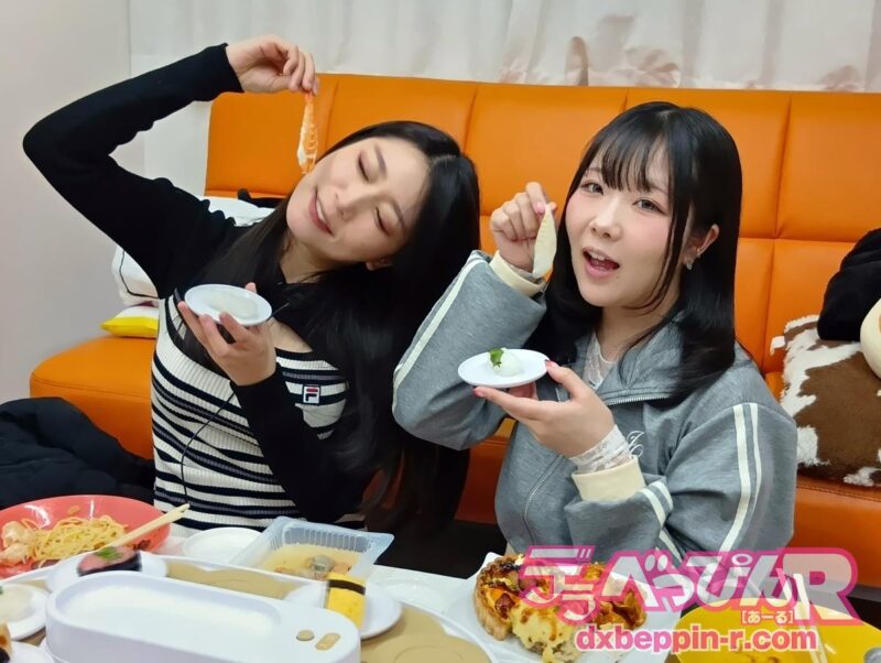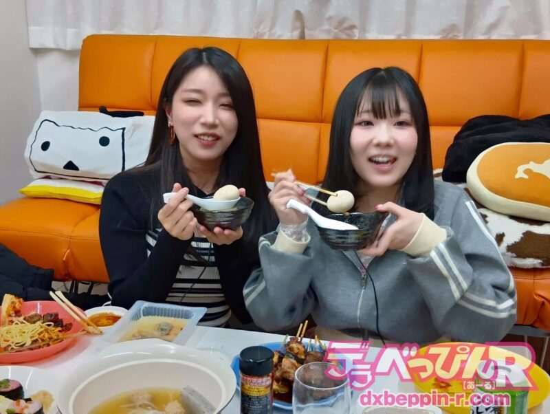 そんなエロトークの最高潮で、これまた配信名物の熱々おでんが登場。熱々のタマゴに美鈴ちゃんは余裕の表情でパクパク、対するみっひーはタマゴを口から出し入れしながら悶絶の表情を浮かべます。