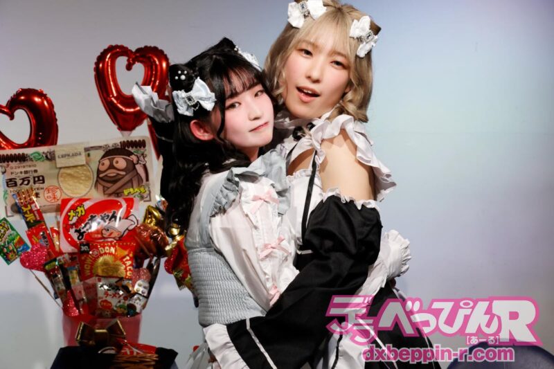 2人はキュートなメイド姿でステージに登場すると、「かわいい!」の声が飛び交います。この衣装は「遅れてきたバレンタインです。特別なことをしたいと思い、着ました」とえりかちゃん。