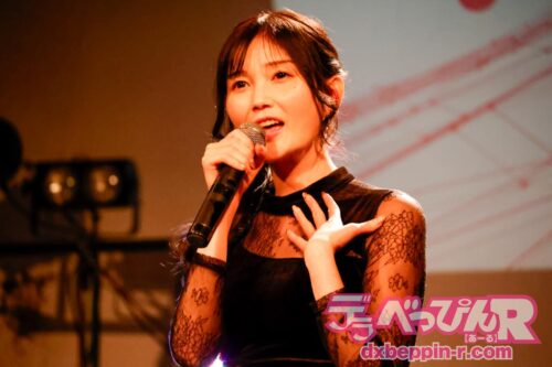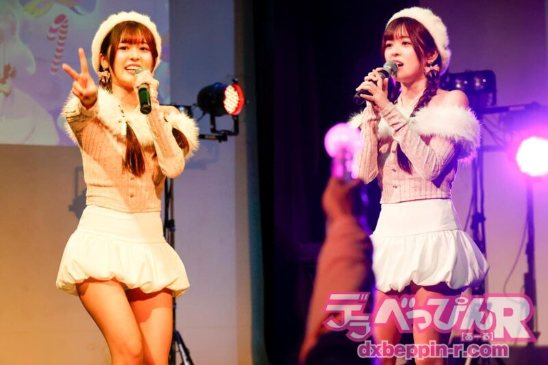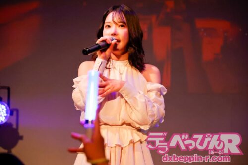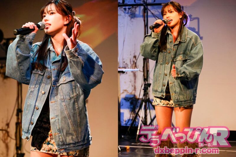 そしてトリを飾るのは、こちらもライブイベント初登場となる桜乃りのちゃん。「東北アイドルの奇跡」の触れ込みでAVデビューしただけに、まさに“全身アイドル”といった輝きに満ちたステージを展開。キュートな笑顔と躍動感あふれるパフォーマンスで会場の視線を一身に集め、歌唱力、ステージングともに高い完成度を見せつけます。フロアの熱気も最高潮に達し、ライブのラストを飾るにふさわしい華やかなステージとなりました。今後のライブ活動が非常に楽しみになる、期待の逸材の登場と言えるでしょう。