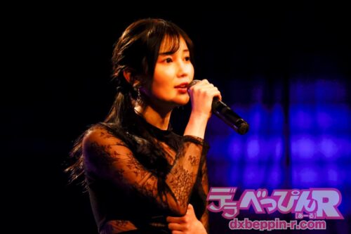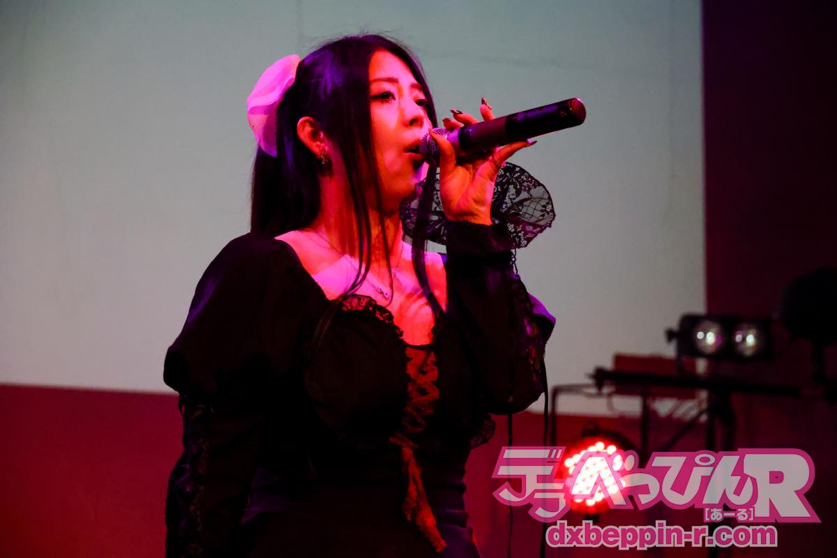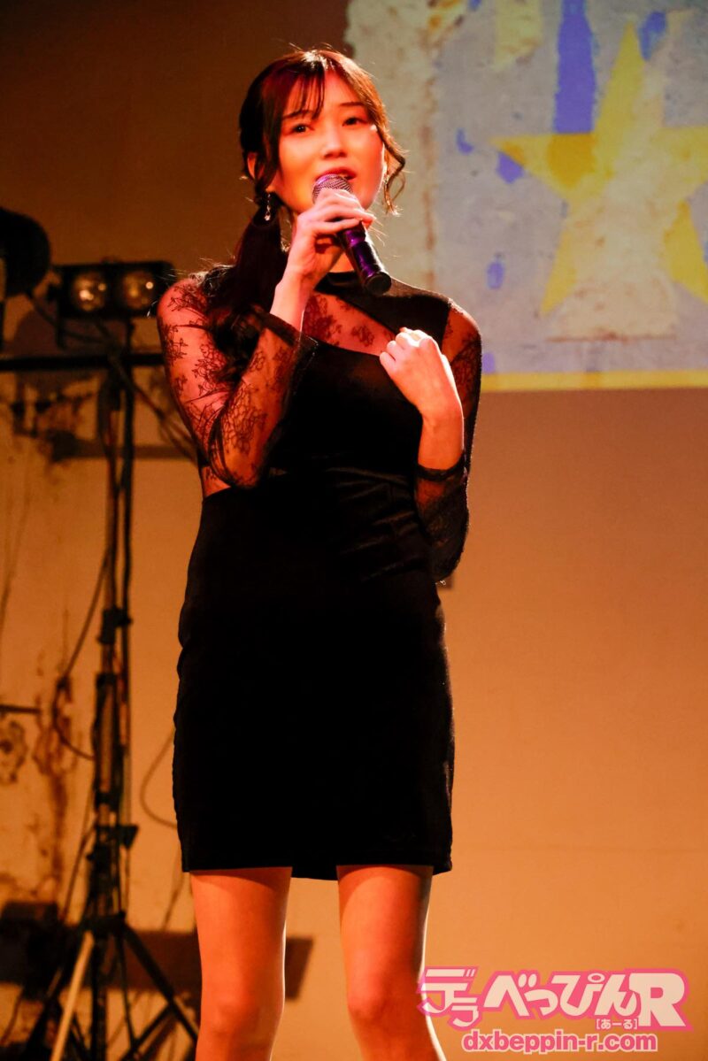 続いて登場したのは、すっかり同ライブの常連となった神喜ミアちゃん。露出度の高いセクシーな衣装で登場すると、ロックテイストあふれる楽曲をパワフルに熱唱。堂々としたパフォーマンスと圧倒的な存在感で会場のボルテージを一気に引き上げ、今やこのライブをけん引する存在へと成長していることを感じさせてくれました。