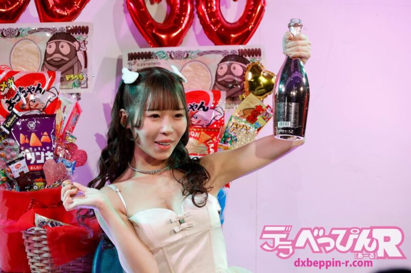 生誕祭を祝うシャンパンやおつまみがファンから次々と振る舞われ、「感謝感激です」と笑顔で乾杯。会場全体でりりかちゃんを祝福する、温かな空気に包まれます。22歳になった抱負を聞かれると、「北海道旅行に行って、ウニを食べたい」とコメント。どうやらウニが大好物のようです。