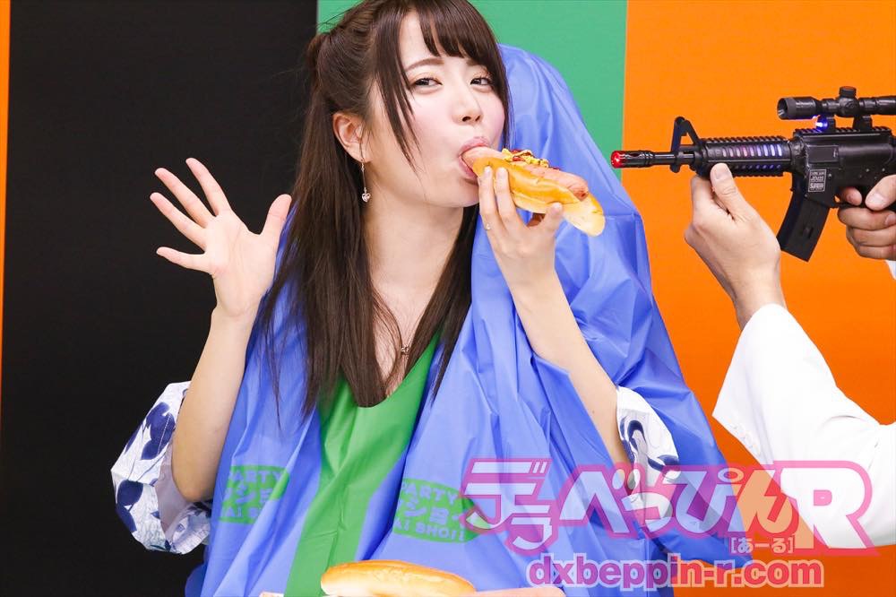長瀬麻美&初美りんペアはホットドッグ。初美りんちゃんがケチャップをかけるときに「いっぱいかかってる」などエッチな実況をして盛り上げてくれます!