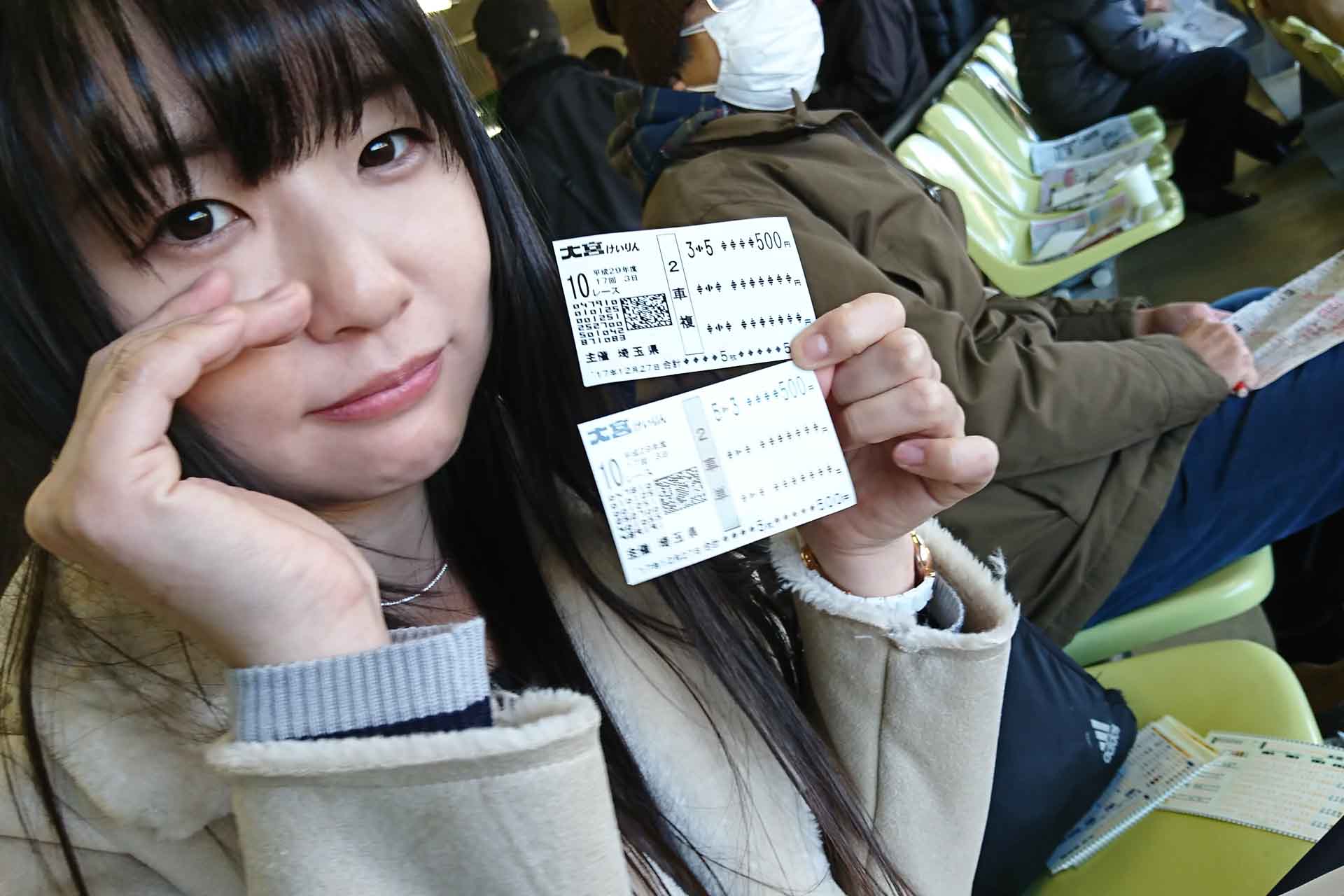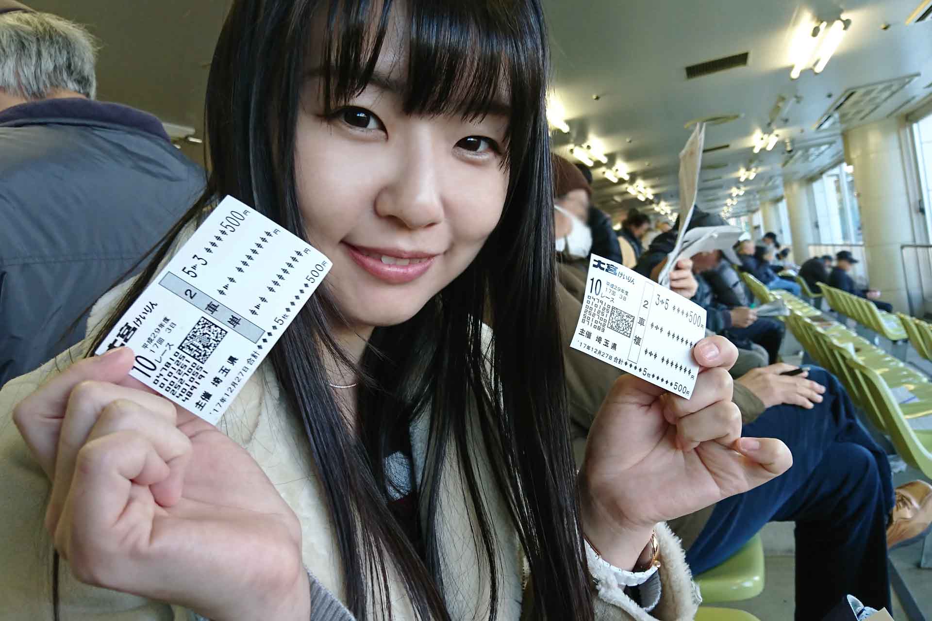 コラム前編では、初めての競輪体験で、いきなり当たり券を予想的中しちゃったつぼみたん。この勢いに乗ってつぎの第10レースにも挑みます( ´∀`)!!