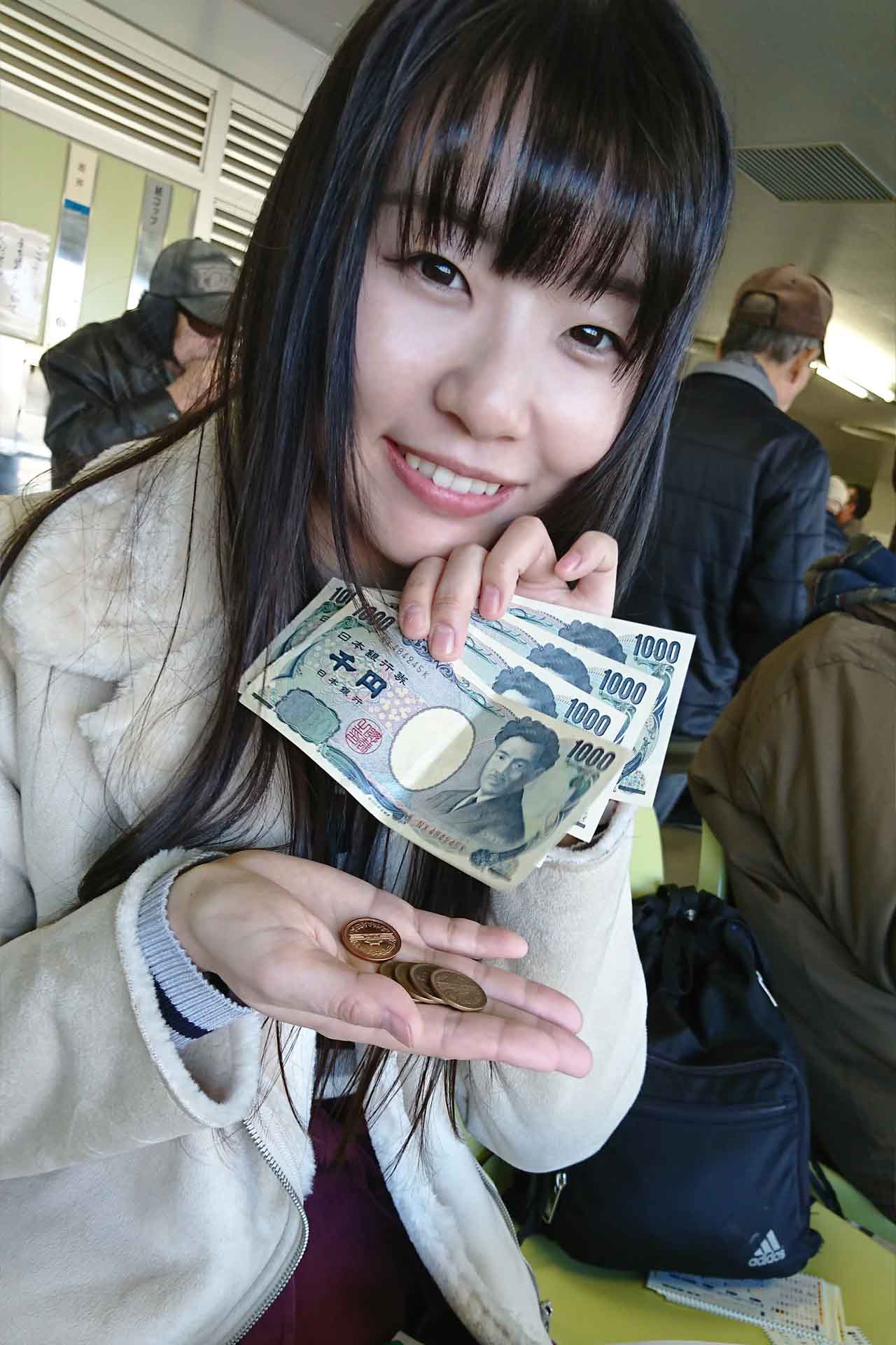 初めて賭けた9レースでは配当810円の2車複を当てて本当にうれしそう♪ つぎこんだ500円が一挙に4050円に!!