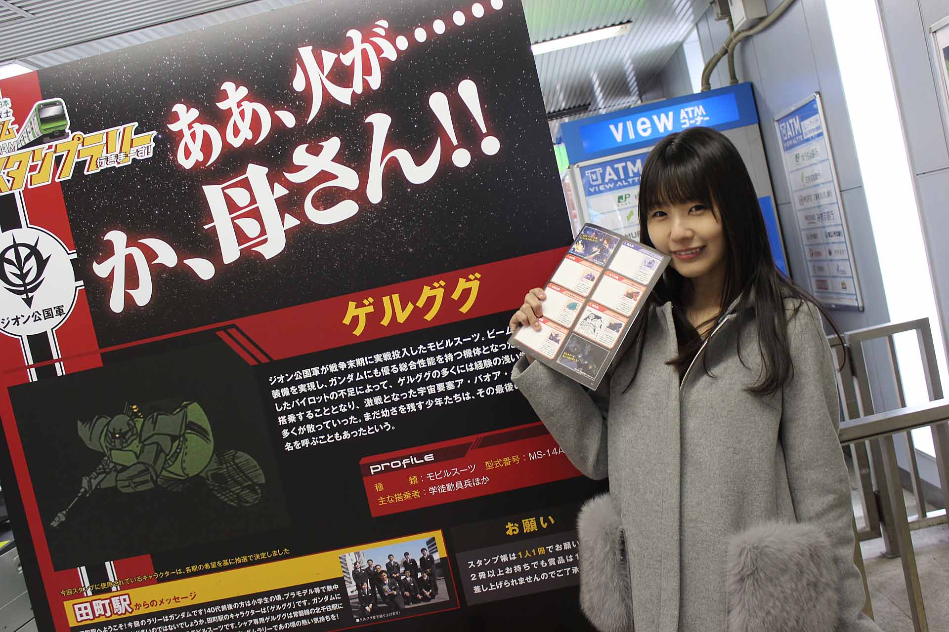 田町駅では、ジオン軍がようやくガンダムの性能に追いついたと言われる傑作MSゲルググを発見! ジオン学徒兵の悲哀が伝わる名セリフを前にニッコリのつぼみたんww。