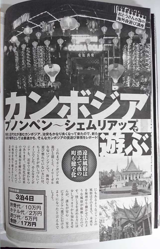 大好評!お父さんのための海外夜遊び講座。今回は東南アジア最後の秘境と言われるカンボジアの最新風俗事情を徹底ガイド!! 治安も安定してきて女のコもウブでいい子が多いから、今が遊び時ですぞー!!