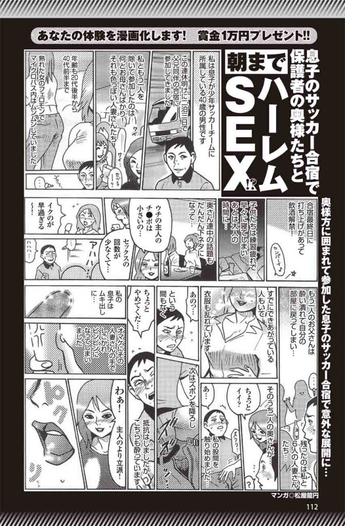 ズバ王読者のマル秘エッチ体験をマンガで再現するコラム。今回は静岡県在住のT.Hさん(40歳)が体験した、息子のサッカー合宿でのハーレム体験♥