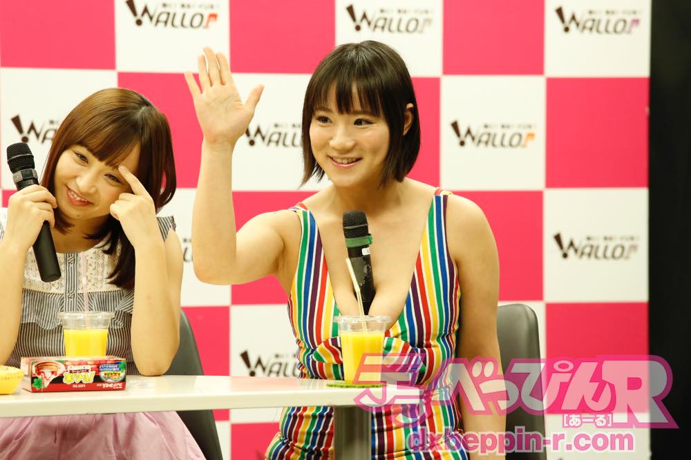 澁谷果歩ちゃんはマイクをおっぱいに挟む特技(?)を披露。そのままトークを続けます。