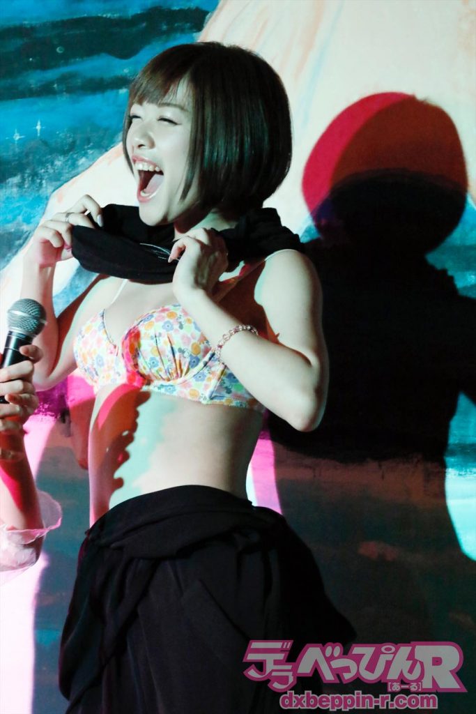 そして、早くも私物プレゼント抽選会に。森保さなちゃんはプレゼントを忘れてしまい、何と着ていたキャミソールをプレゼント! ゲットしたファンが匂いを嗅ぐと「洗濯の匂いがする」と真っ当な感想を述べてくれました(笑)。