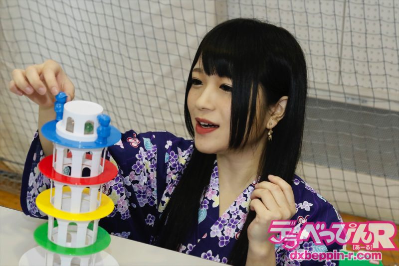 南梨央奈ちゃんは真剣な表情でバランスゲームに挑戦。