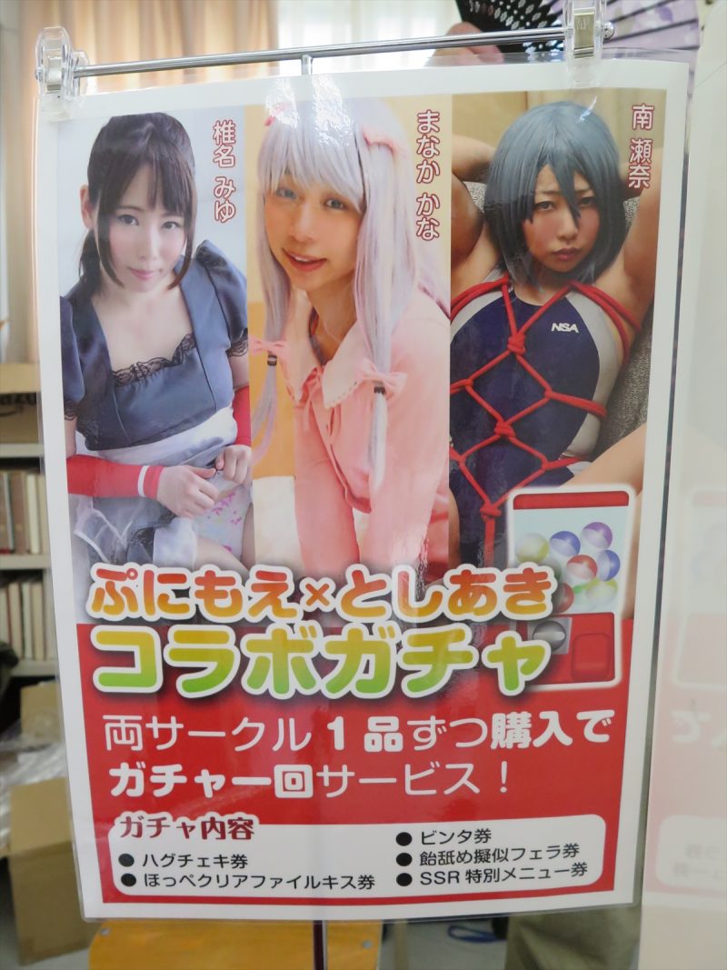 ゆるケットの中心ブースである「としあき」は今回「ぷにもえ×としあき」コラボブースとして出展。まなかかなちゃん、椎名みゆちゃん、南瀬奈ちゃんが売り子に。新作が飛ぶように売れて即完売!