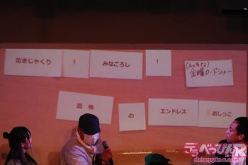 Aブロックは葉月美音ちゃんとゴウヒデキさんが高得点を出しますが、短文をキャッチ―に使う必勝パターンを駆使したゴウヒデキさんが審査員点を多く集め勝ち抜け。