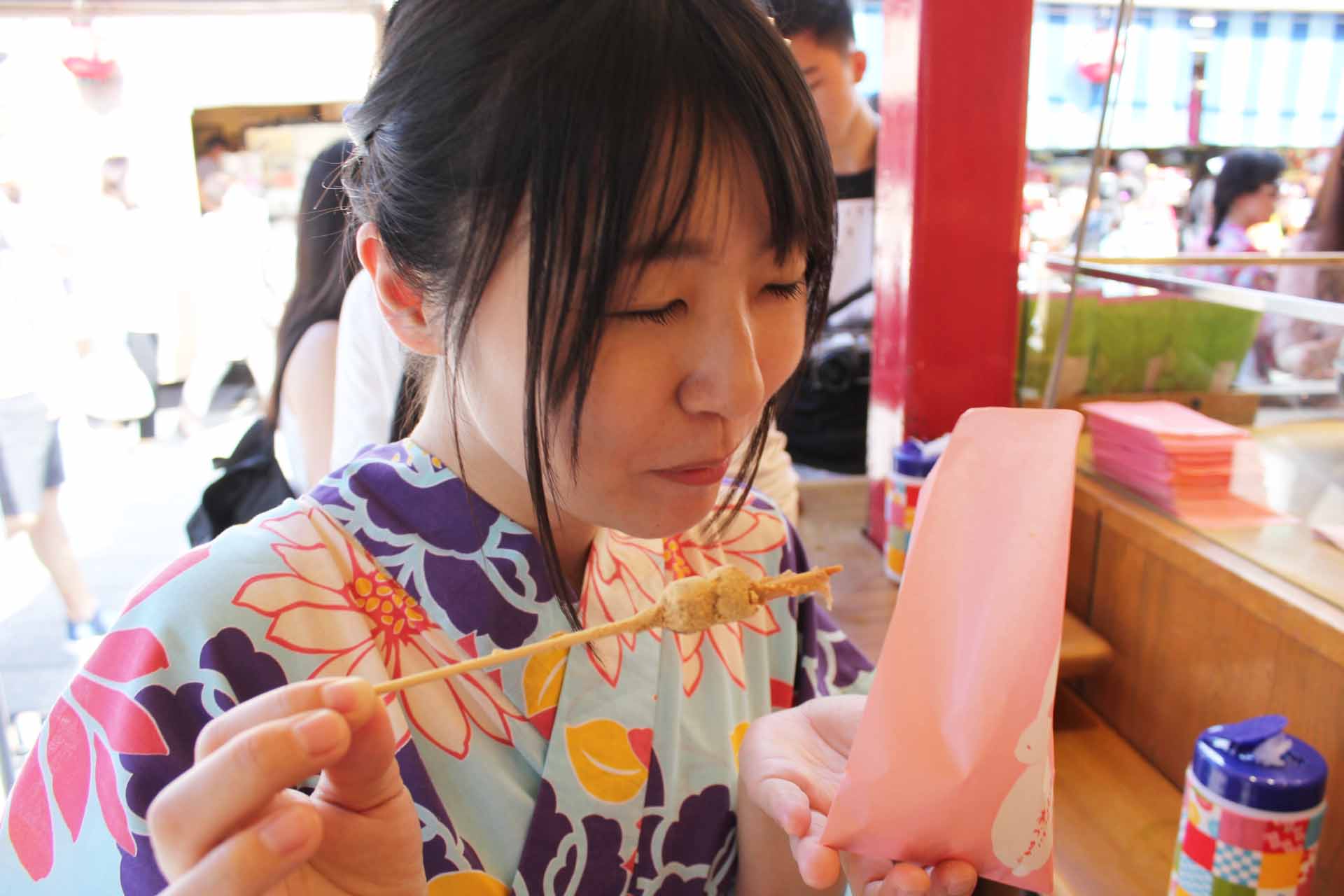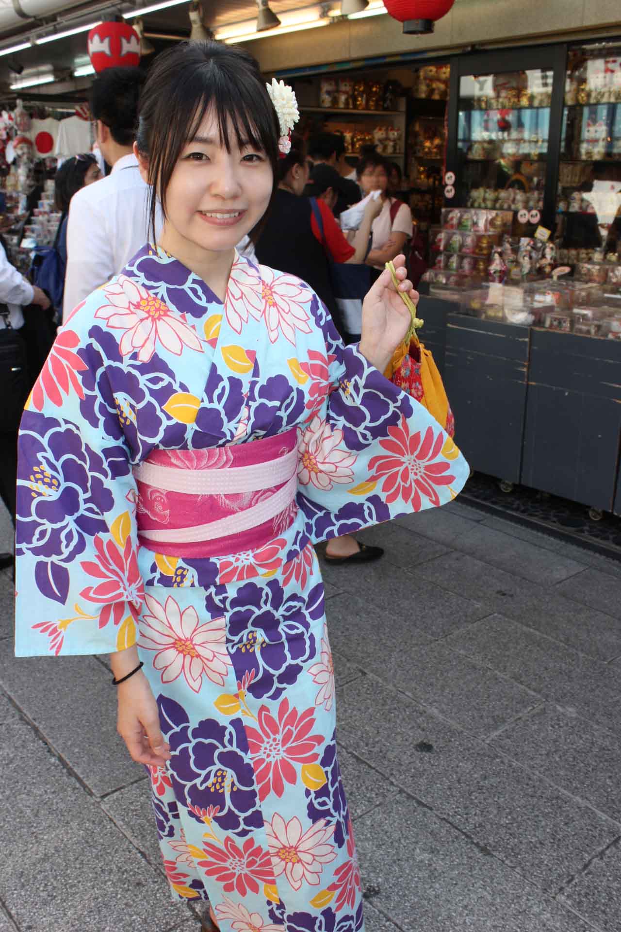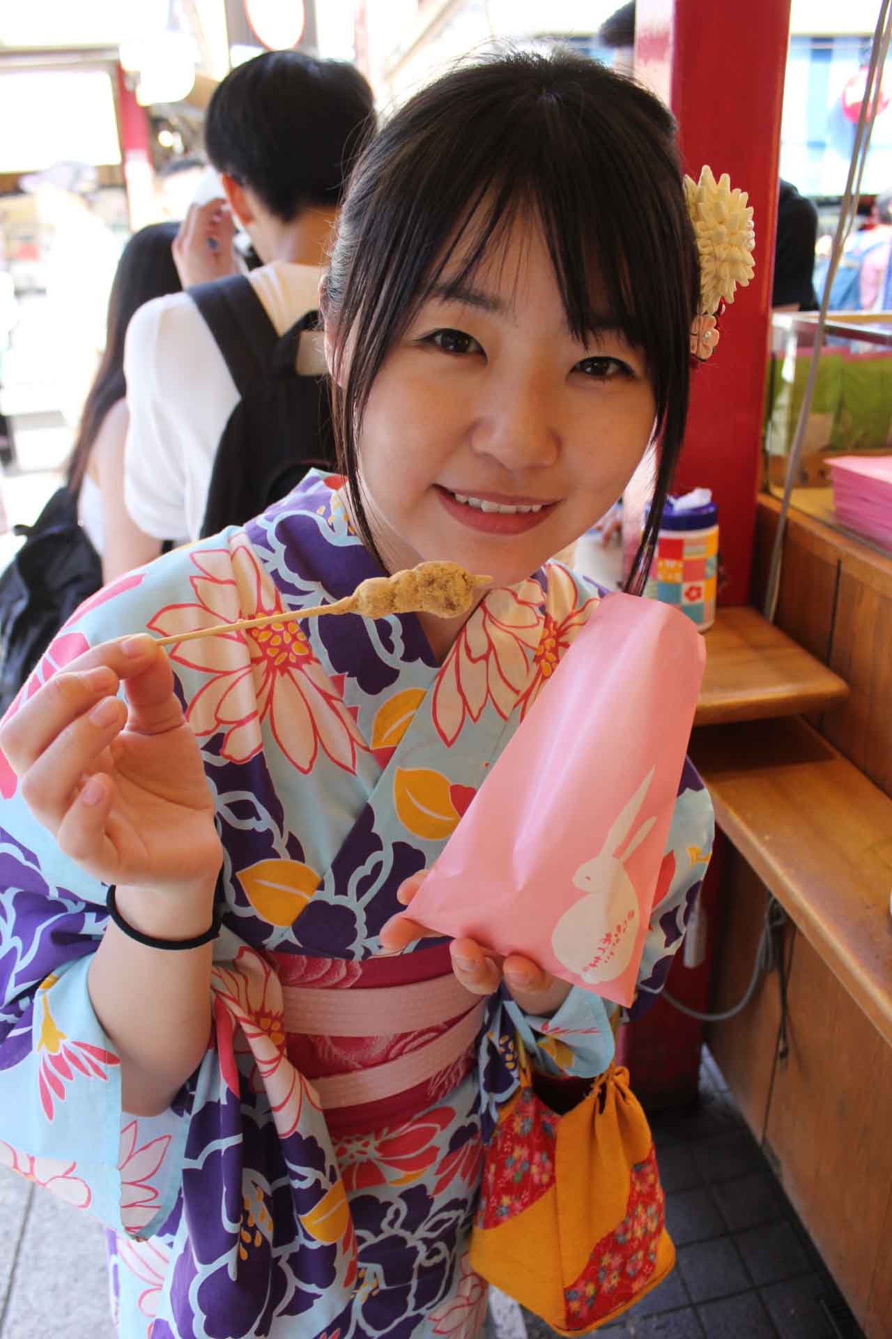 浴衣を着た女性はたくさん歩いてましたが、こんなカワイイ子ほかにいなかったよー(確信!)。世界が羨む浴衣美人と仲見世を散策♪