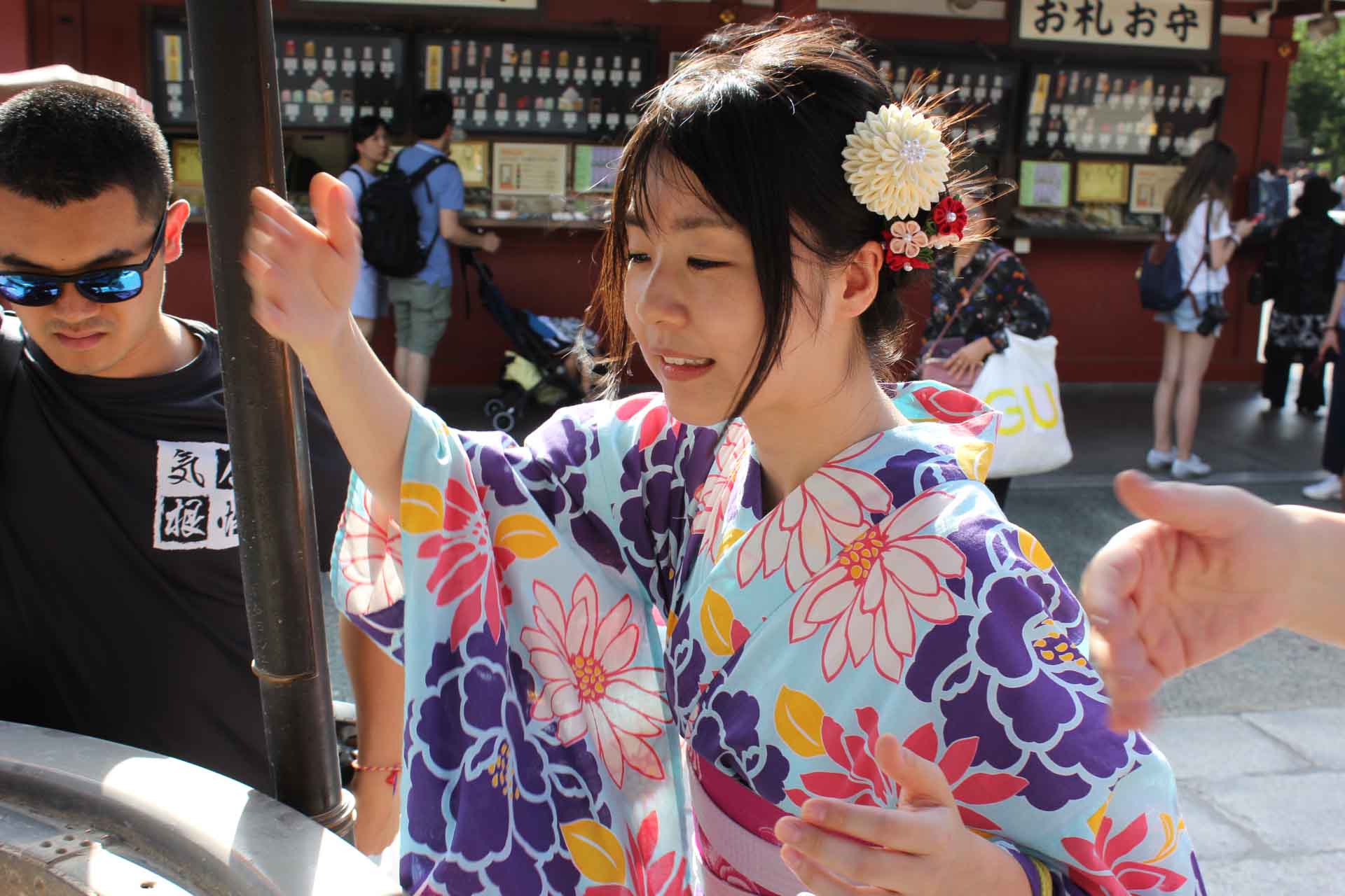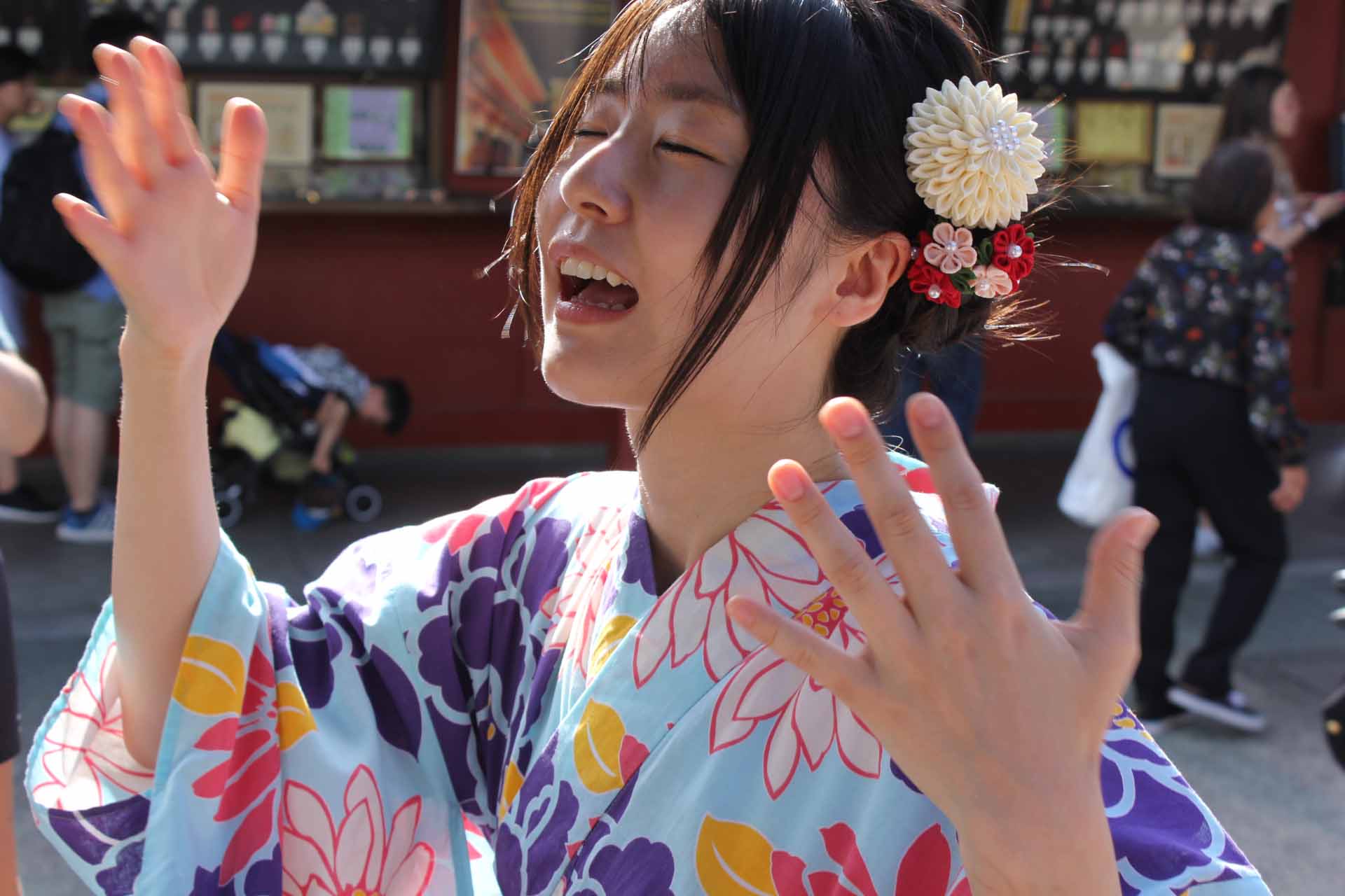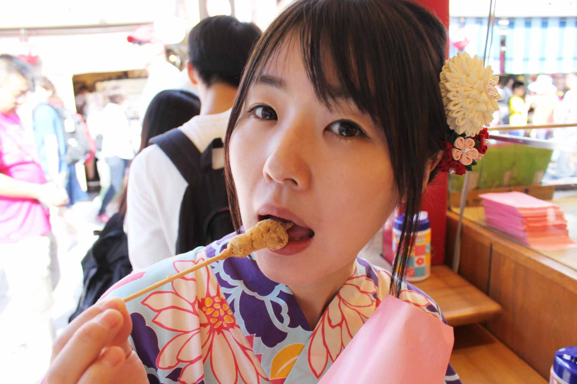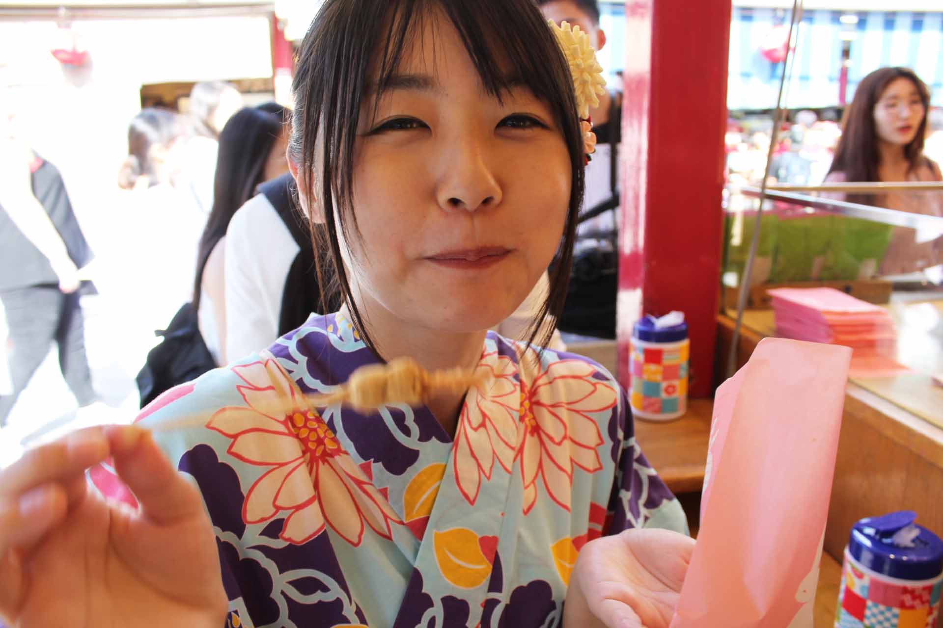 浴衣を着た女性はたくさん歩いてましたが、こんなカワイイ子ほかにいなかったよー(確信!)。世界が羨む浴衣美人と仲見世を散策♪