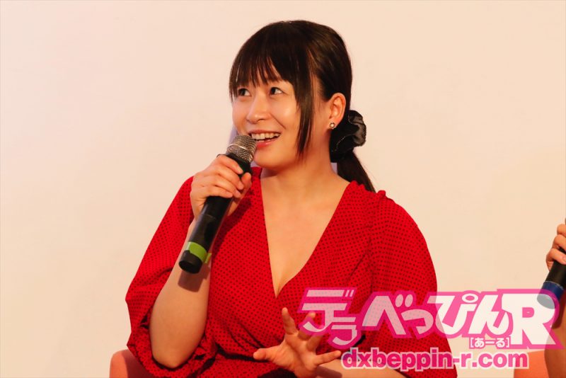 「(AV女優になる前に)働いていた職場の男女4人でラブホに行った。同じ会社だったので次の日気まずかった」とあるある話を語った羽月希ちゃん。