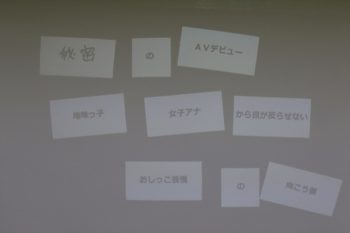●エロワードが書かれた複数枚のカードを自由に組み合わせて架空のAVタイトルを作る