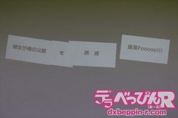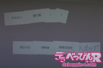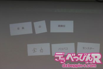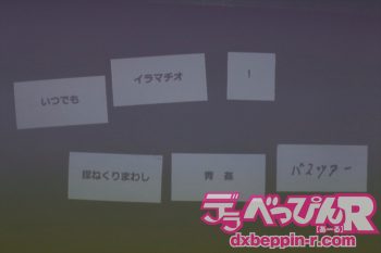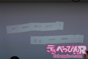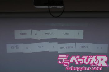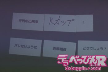 こちらの1回戦は「2020年の東京五輪を題材にしたAVタイトル」の条件が。また2回戦ではテーマカードが澁谷果歩ちゃんの代名詞「Kカップ」、3回戦のテーマカードがかさいあみちゃんの代名詞「最高FOOOOO!!!」となり盛り上がりました!