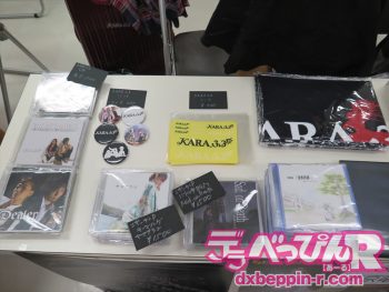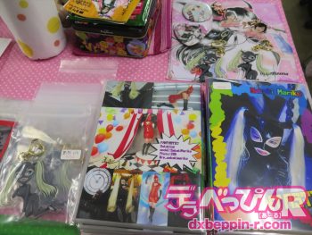 MARRION APPARELを展開する「まりおん」ブースには宮崎あやちゃん、真咲南朋監督、広報のあもんちゃんがブースに。まさに美人三姉妹! マリオンTシャツや真咲監督と大塚咲さんが制作した宮崎あやROM写真集などを販売。