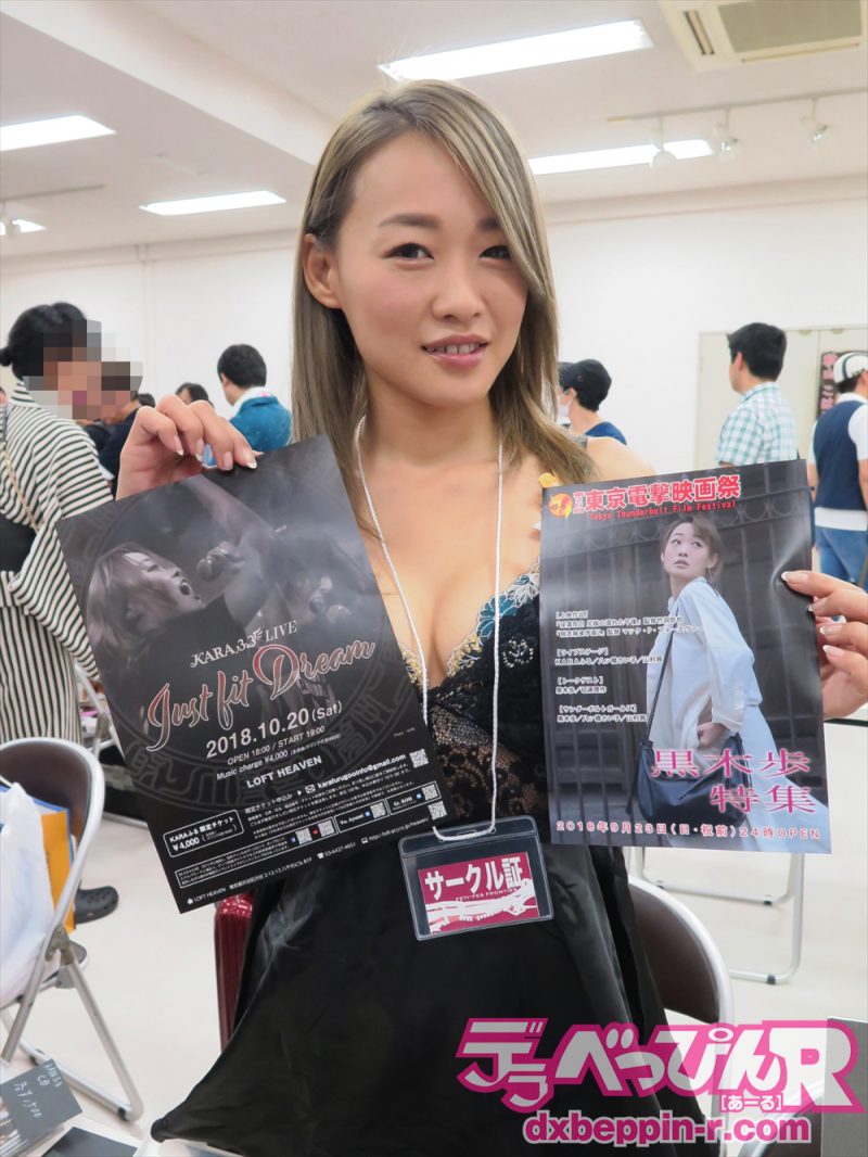 エロVシネ、ピンク映画などから隠れた傑作を発掘・発信するオッパイと血の映画祭「東京電撃映画祭」ブースにはアーティスト・女優として活躍する黒木歩さんが参加。また脚本家や映画監督も手掛ける切通理作さんも参加。黒木歩さんは自身のバンド・KARAふるのライブもPR。10月20日にLOFT HEAVENで開催されます。