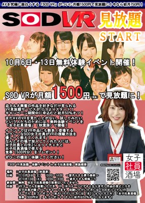 AVメーカー・SODの通販・配信サイト「SODプライム」で『AV見るならVRの時代が加速! 1,500円見放題スタート!」。その記念として「SOD VR見放題・体験イベントin 女子社員酒場」が10月6日に開催されました!