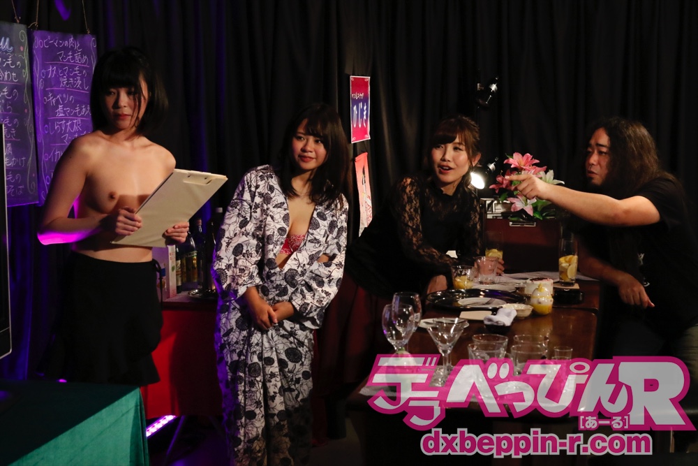 出演はマン毛スナックのママ・美泉咲ちゃん、スナック店員の相澤ゆりなちゃんと一二三鈴ちゃん。常連客はDJ急行さんとなっています。