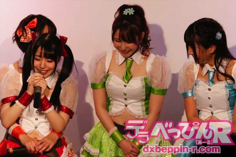 名物の生脱ぎパンティプレゼント抽選コーナーでは先輩の生脱ぎをしっかりサポートしたり、恥ずかしがりながらも生脱ぎを初披露したりとすっかりメンバーの一員に。