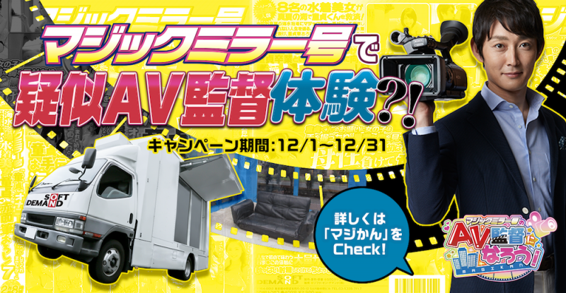 SODが提供しているPC・スマホ用R18オンラインゲーム「マジックミラー号のAV監督になろう!〜マジかん〜」でなんとAV監督になれるキャンペーンが開始!!