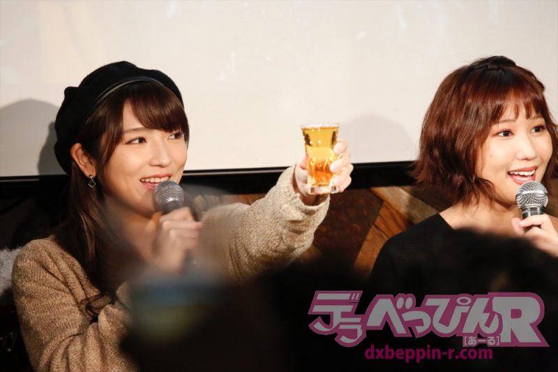 ゲストの2人が登場すると大盛り上がり! 「神咲詩織と湊莉久のかかってこいやー! かんぱ~い!」と2人が音頭を取り乾杯。イベントがスタートしました。