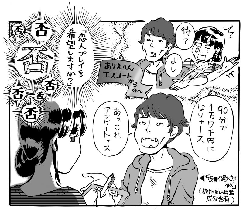 部屋についたら、まずお支払い。そして、アンケートというお決まりの流れ。恋人っぽいプレイを希望か否かという項目では、力強く「否」を選びました。