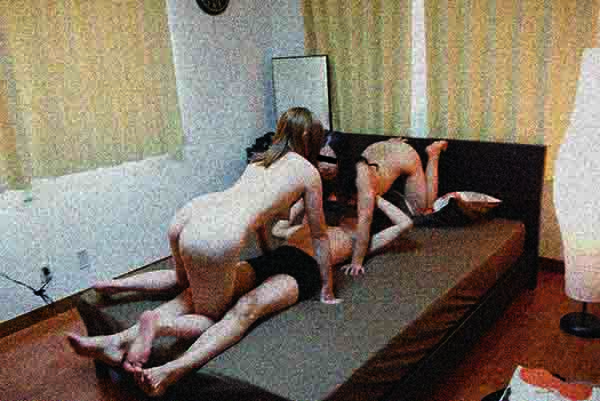 眼の前で女子二人がくんずほぐれつでイキまくる姿を見ているうち、こちらも参戦欲がムクムク湧いてきたので、満を持して愚息を投入!! ダブルフェラでペニスの両側から舐めあげられる快感に、早くも射精したくなるのを必死にこらえて、攻守交代。