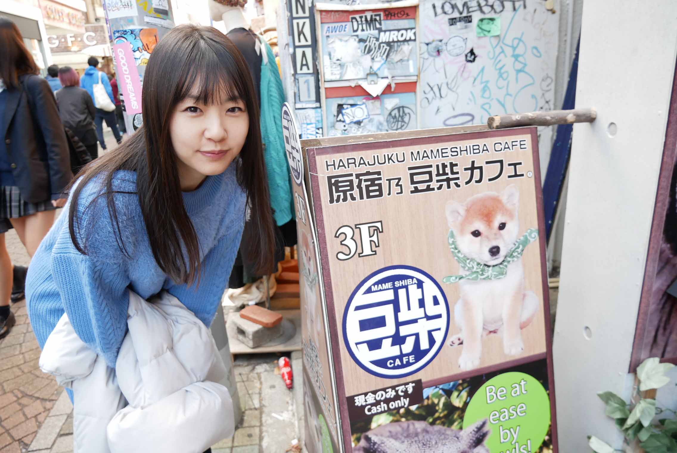 つぼみたんの舌にはちょっと辛すぎたカレーを食したあとは、原宿竹下通り沿いにある豆柴カフェへ!