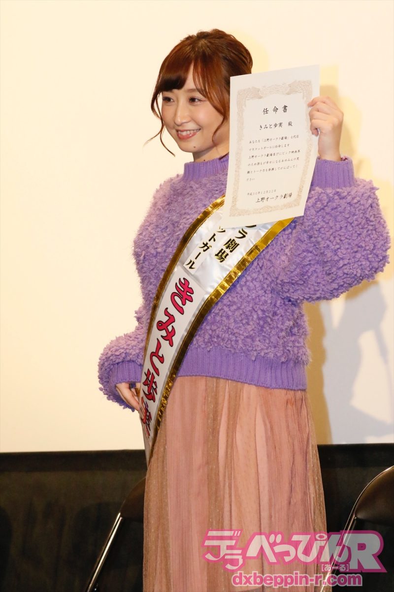 初仕事として2019年1月5日に行われる新春舞台挨拶を発表。新春舞台挨拶ではお酒が振る舞われると聞き、お酒が大好きなきみと歩実ちゃんが思わず喜ぶ姿も見られた。また、2019年の特製カレンダー発売も宣伝し見事にマスコットガールの役目を務めてくれた。
