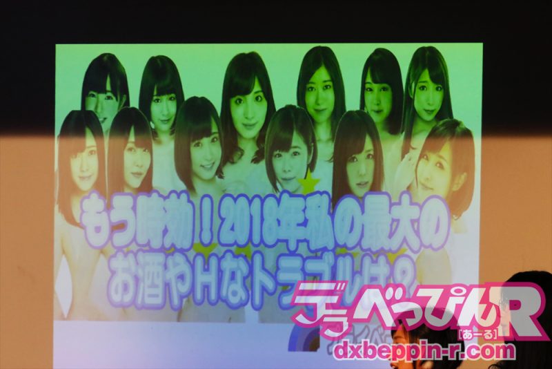 1部は「プライベートトーク」から開始。「2018年最大のお酒やエッチでのトラブル」話では「寝ている時にま〇こから酒を飲まされた」といきなり飛ばすのは春埼めいちゃん(笑)。