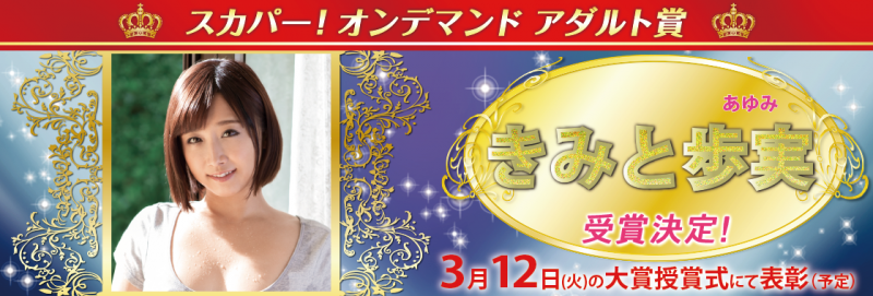 そしてスカパー!オンデマンドアダルトの売上トップ6選出から再度の投票(購入)という過酷なレースを勝ち抜いたきみと歩実ちゃんがそれぞれ受賞。
