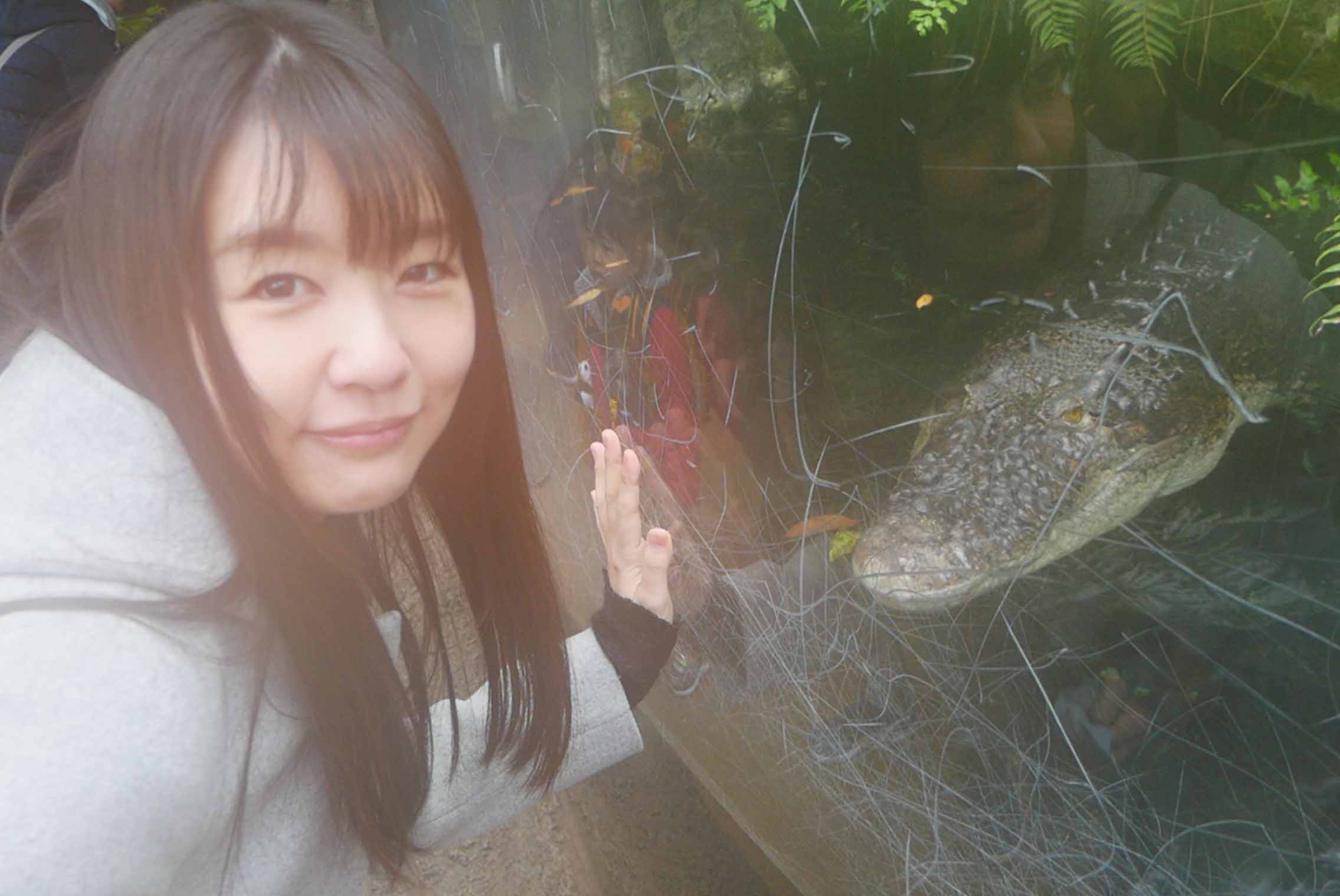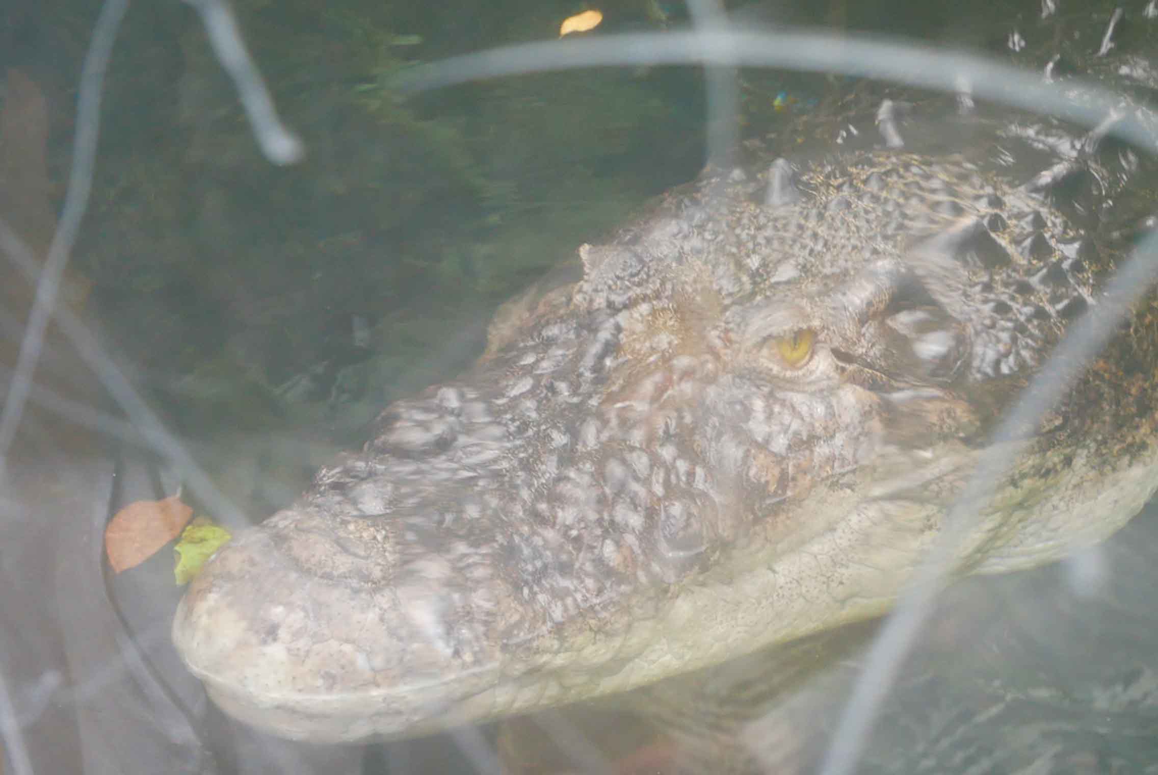 館内に入ると待ち構えていたかのように巨大なワニが近づいてきた!!
