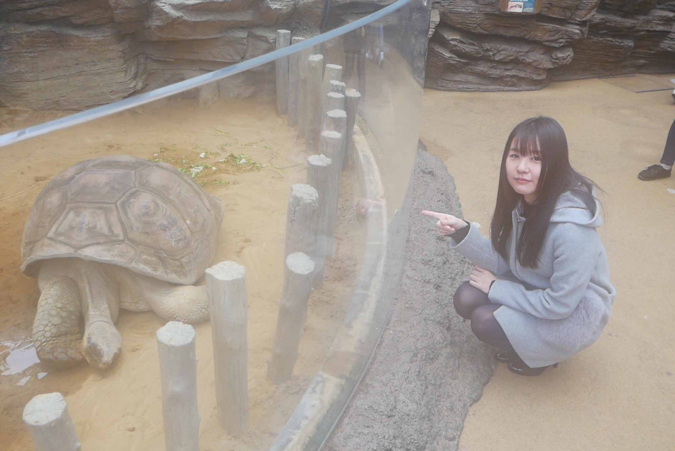 こちらは超巨大な陸ガメ!!つぼみたんの身体よりはるかに大きいです!! うーん、それにしても爬虫類館、あったかいのはいいけど、湿度がすごいのですぐカメラのレンズが曇っちゃいます・ω・