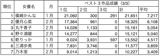 しかも篠崎かんな、丸千賀子、三浦歩美という顔ぶれがランクインということで、巨乳の2018年に対して熟女の2019年という感じになっております。果たして来年の今頃、新人女優賞ノミネート、どうなっているでしょうね。