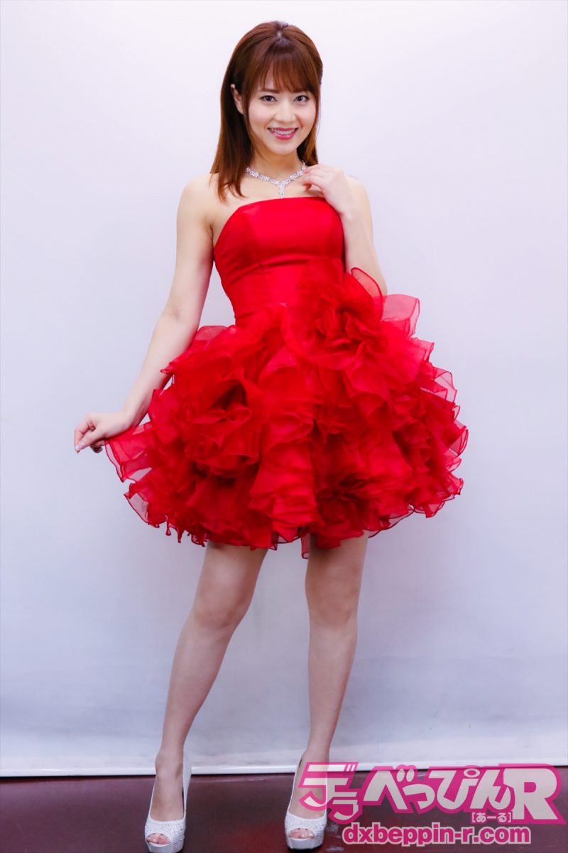 真っ赤なドレス姿で登場した明歩ちゃん。卒業イベントの悲しさはなく、いつも通りの明るい表情。
