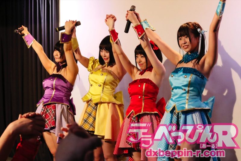 メンバーの卒業シーズンを終えて、4月から新体制が始まったマシュマロ3d+【水嶋アリスちゃん(マシュマロ☆ソーダ)、藤川菜緒ちゃん(マシュマロ☆クランベリー)、NIMOちゃん(マシュマロ☆カシス)、五十嵐星蘭ちゃん(マシュマロ☆レモン)。