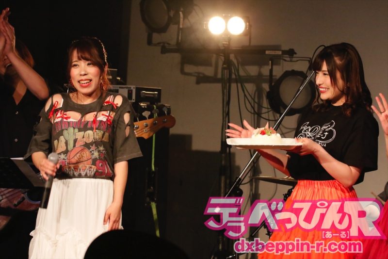 そして、あみちゃんのライブ終了後に出演メンバーがステージに登場。この日はあみちゃんの誕生日なのでケーキを持って祝いに来てくれました! このアットホームな雰囲気こそミルジェネライブの特徴です。