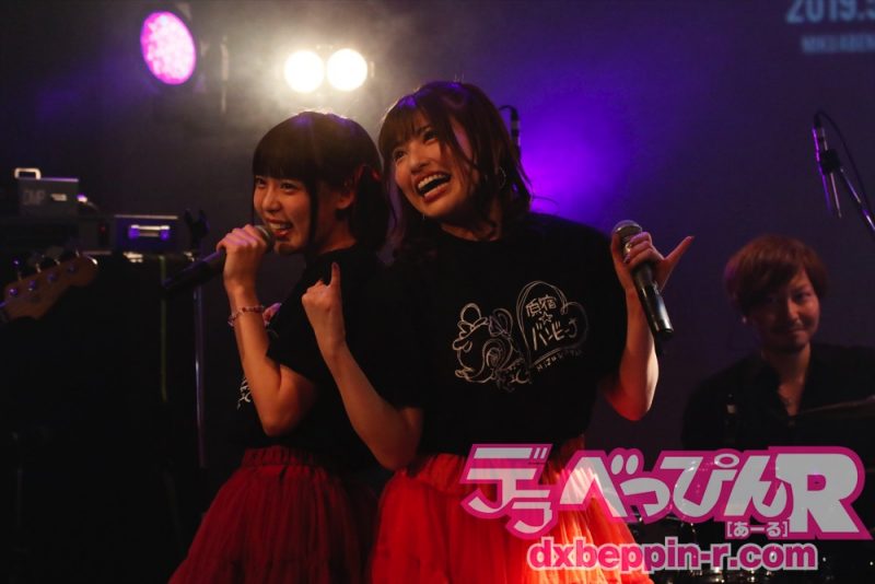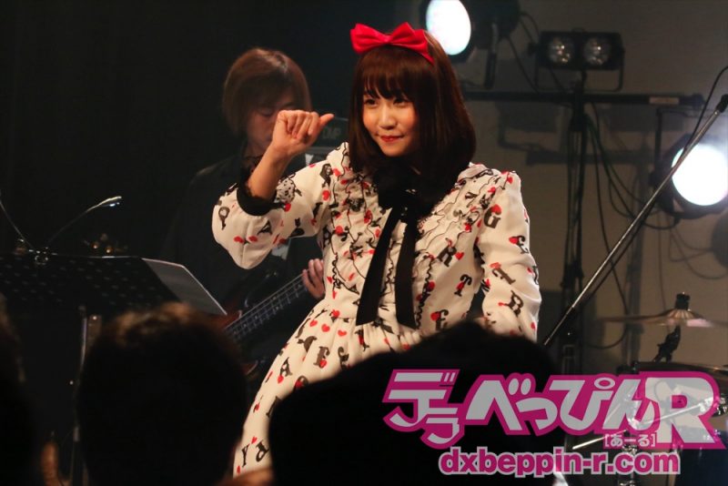 「普段はオケ(カラオケ音源)でアイドル活動をしているので、バンドは初めて」とコメント。昨年末にマシュマロ3d+を卒業後、ソロで様々なアイドルイベントに出演。この日も熱烈なファンが大挙。一挙手一投足に熱い声援が飛び、ミルジェネライブ初のリフトも見られ盛り上がりました。