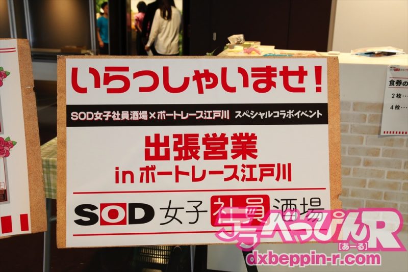 こちらのイベントは人気AVメーカーのソフト・オン・デマンド(以下、SOD)がボートレース江戸川とコラボしたもの。秋葉原にある店舗と同じ立ち飲みスタイルで、SOD女子社員たちと一緒にボートレース観戦が楽しめ、ボートレースを知らない参加者にはSOD女子社員が舟券の買い方を個人レッスンしてくれるサービスもあるという夢の企画。