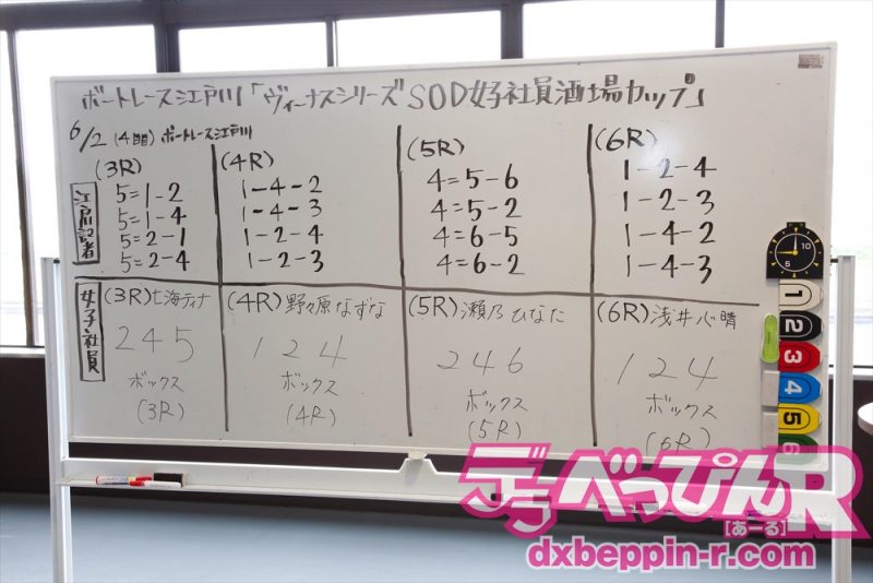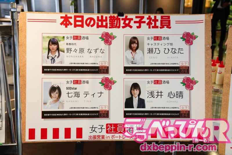 5月31日~6月2日の間にボートレース江戸川場内特別観戦フロアで期間限定のイベント「SOD女子社員酒場×ボートレース江戸川」が行われ、6月2日にはSOD Starで活躍する七海ティナちゃん、SOD青春時代でデビューした野々原なずなちゃん、女子社員酒場ナンバーワン人気の瀬乃ひなたちゃん、SODクリエイト新入社員の浅井心晴さんが出張で出勤しました。