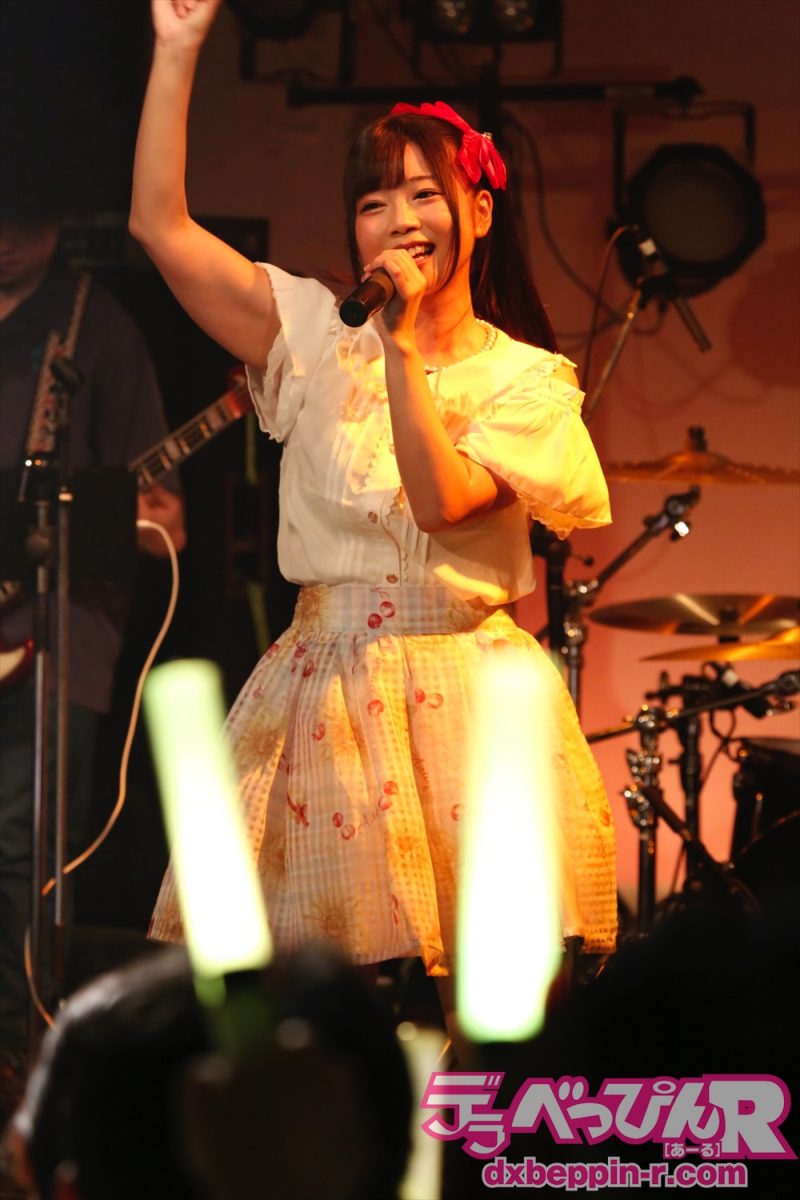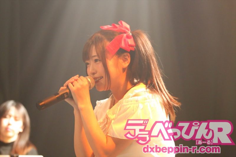 真っ赤なリボンとポニーテールがまさにアイドル! しかも、楽曲はハロー!プロジェクト中心に選曲とあって、羽咲みはるワールド全開。恵比寿マスカッツでステージは相当、経験していますが「すごい緊張している」とMC。