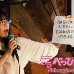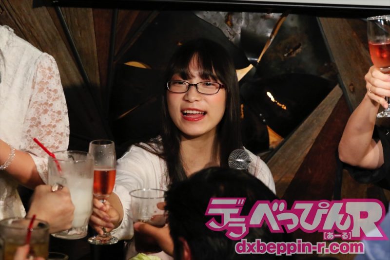 「前回の泥酔ナイトでは酔いすぎて、チェキ撮影会に出られなかった」、「昨日は新宿2丁目で飲んでいた」と泥酔キャラをカミングアウト。そして、乾杯時には新宿2丁目仕込みの「乾杯チンチンケツマ〇コ!」の掛け声で音頭を取ります。泥酔ナイトにまた新たなキャラが出現した予感(笑)。
