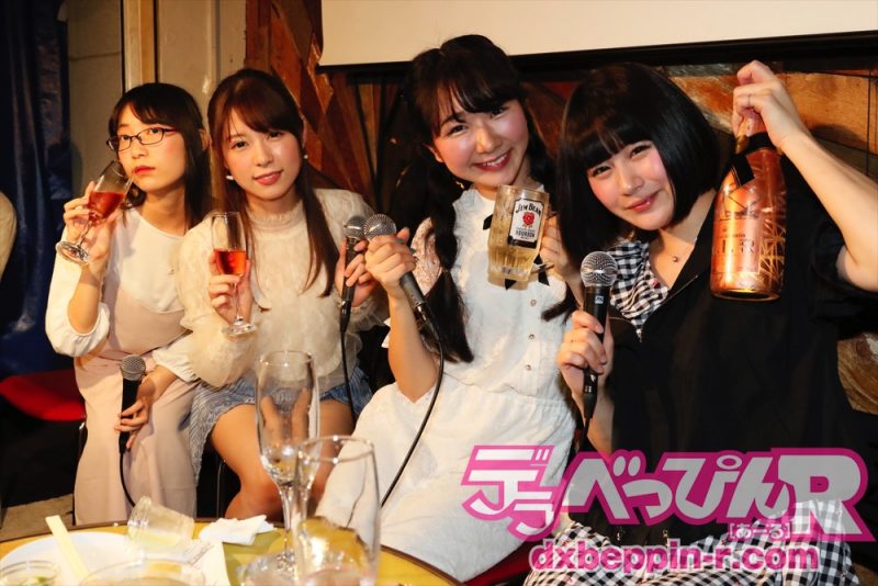 ここで飛び入りゲストとして、あけみみうちゃん、きみと歩実ちゃん、新垣智江ちゃんが参加。あけみみうちゃんは開始早々から実は客席でファンと飲み、出来上がっていました。