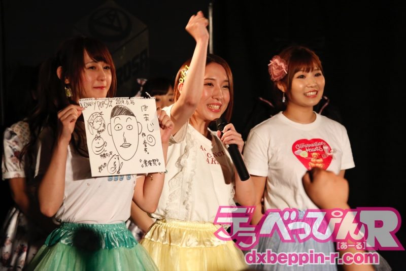 続けて「いつも下ネタソングを歌わせてもらっていますが、カバー曲をさせてもらいます」と自身がファンのアイドルソングを初披露。ファンにオタ芸を求めると、これが大盛り上がり! まるで会場が秋葉原になったようなオタ芸空間が広がりました。