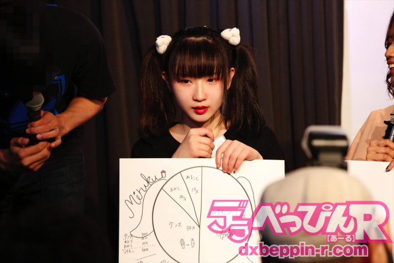 第1部の最後はファンからの質問タイムに。「目標とする女優は誰か?」聞かれ、みるくちゃんは「自分大好き人間だから自分。目標というものは全部、自分です」と豪語、アイシャちゃんは「明日花キララさん、夏目ナナさん」、みうちゃんは「上原亜衣さん」、菜々子ちゃんは「深田恭子さん。体とかいろいろなところに魅力を感じる」、NIMOちゃんは「佳苗るかさん一択」、ひまりちゃんは「琥珀うたさんと白石茉莉奈さん」と様々な名前が上がりました。