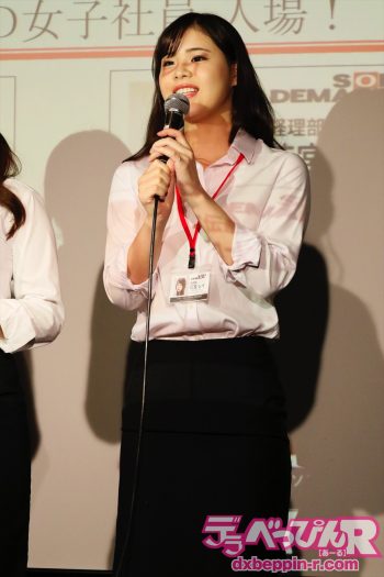 出演したSOD女子社員は卯水咲流ちゃん、さくらみゆきちゃん、葉山りんちゃん、花宮レイちゃんの4人。SOD女子社員制服の白いブラウスとタイトなミニスカート姿で登場。同イベントはファンが様々な形で参加できるのが特徴です。