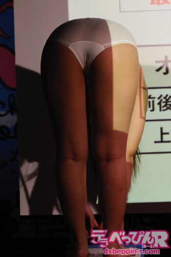3回戦のゲームはイベント恒例となった「ランジェリー運動会」が開催。セクシーランジェリー姿のまま前屈が行われただけでなく、バックからの前屈も見せる大サービスも展開。もはやここまで公開すると前屈の結果がどうでもよくなります(笑)。